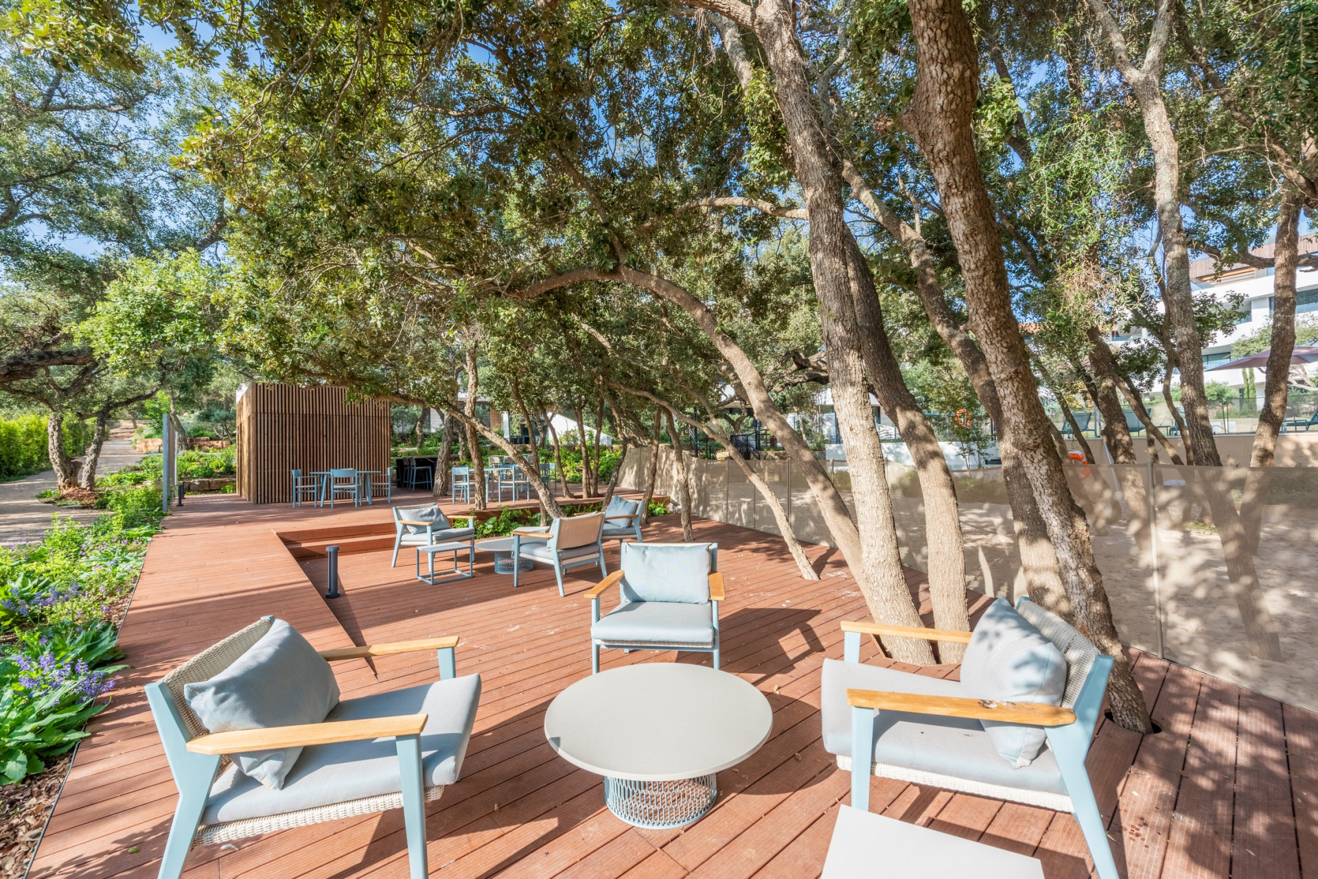 Sal al jardín privado y a las amplias terrazas, donde podrás relajarte al sol o recibir a tus invitados en un entorno sereno y bellamente ajardinado.
