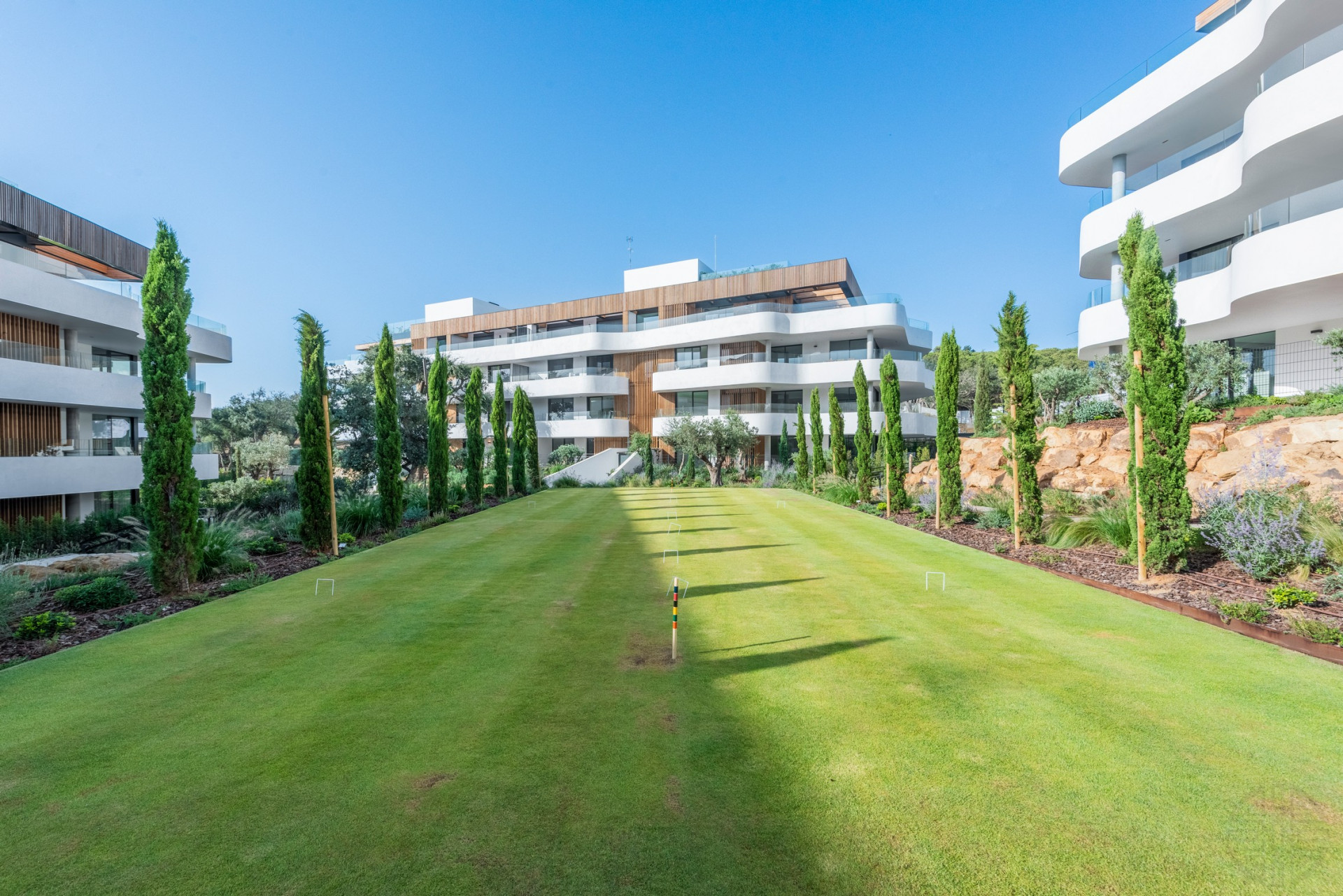 Con hermosos jardines paisajísticos, piscinas atractivas y instalaciones de bienestar, Villa Verde proporciona un refugio de tranquilidad, a solo unos minutos de La Reserva Golf, el Puerto Deportivo de Sotogrande y los exclusivos clubes de polo.